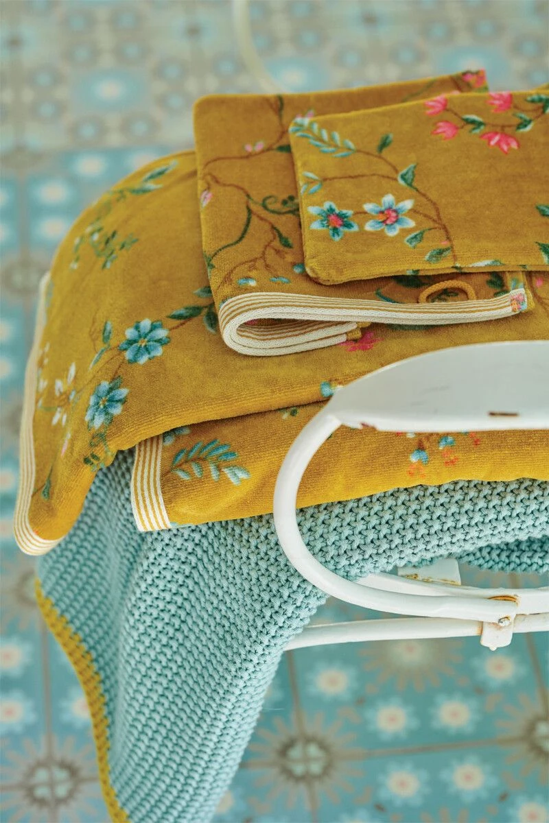 Wrap yourself in comfort with the yellow set of three Les Fleurs bath towels. The stylish Les Fleurs bath linen collection will look truly elegant in any bathroom. The bath towels have a design of elegant flower branches with small, stylised flowers. The Les Fleurs bath linen series pairs beautifully with the other series by Pip Studio, which creates a lovely mix-and-match effect in your bathroom.