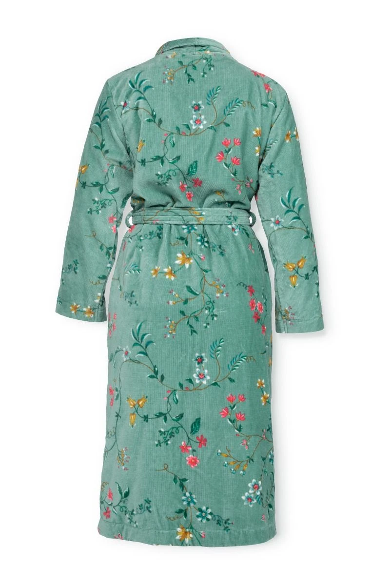 Snuggle up in this green Les Fleurs bathrobe for a cosy feeling at home. This green Les Fleurs bathrobe is great to wear in the morning or at the end of the day. The Les Fleurs Bathrobe features a print of elegant flower branches with small, stylized flowers. The inside of the bathrobe is green. The bathrobe has a stitched collar, slit pockets, and a long belt. The Les Fleurs bath linen series pairs beautifully with the other bath linen series by Pip Studio, which creates a lovely mix-and-match effect in your bathroom. The Les Fleurs bathrobe is made from 100% high-quality cotton terry velour with a quality of 380 gr/m2, making it super soft, plump, and thick and giving it excellent moisture-absorbing, breathable, and quick-drying qualities. A bathrobe to fall in love with!