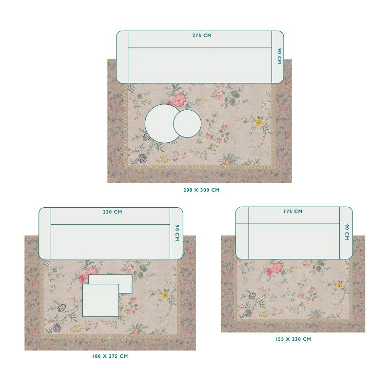 - Available in sizes: S = 155×230 cm, M = 185×275 cm en L = 200×300 cm