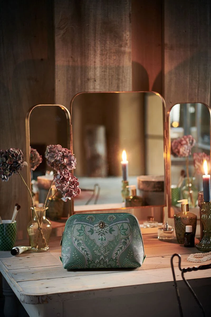With this toiletry bag from the Kyoto Festival collection you always have your favourite beauty products within reach. The toiletry bag is decorated with a unique variation of imaginative chintz flowers and leaves and consists of two compartments and several small compartments. The inside is finished with a design of stylized arches.