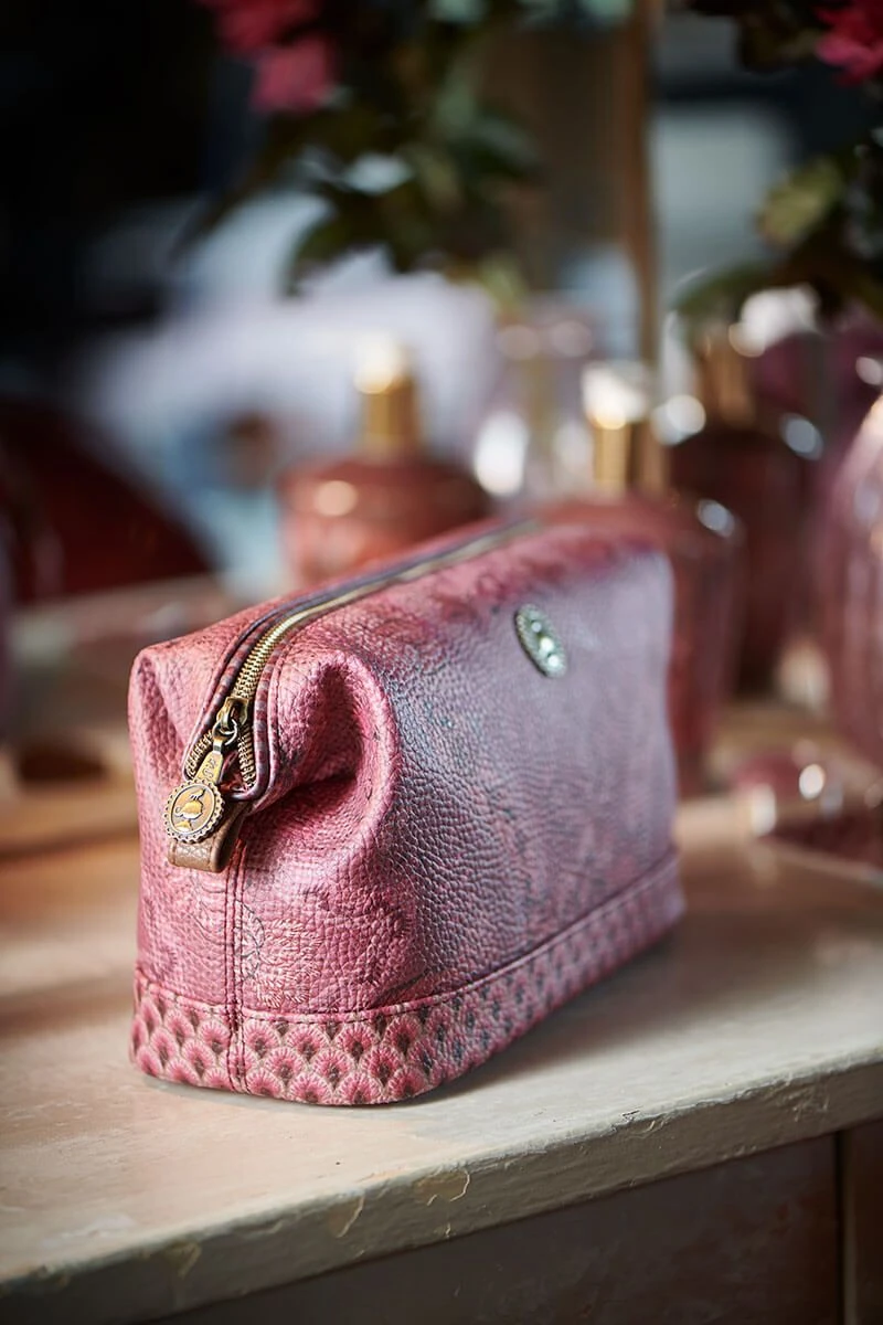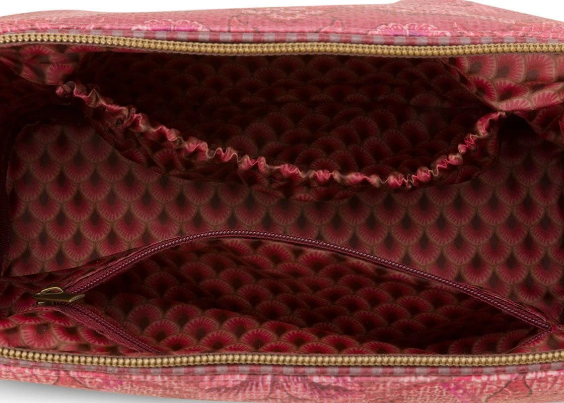 With this toiletry bag from the Kyoto Festival collection you always have your favourite beauty products within reach. The toiletry bag is decorated with a unique variation of imaginative chintz flowers and leaves and has a scallop pattern at the bottom. The toiletry bag has a large compartment and several small compartments and is finished on the inside with a design of stylized arches.