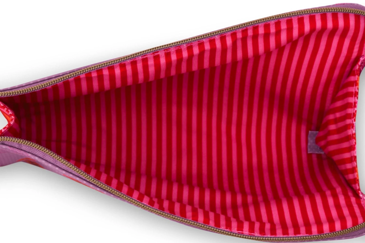 With this toiletry bag from the Kawai Flower collection you always have your favourite beauty products within reach. The toiletry bag is decorated with graceful twigs on which imaginative buttercups, poppies, anemones and marsh marigolds grow. The toiletry bag has a large compartment and is finished on the inside with a design of symmetrical horizontal stripes.