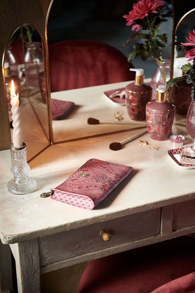 With this toiletry bag from the Kyoto Festival collection you always have your favourite beauty products within reach. The toiletry bag is decorated with a unique variation of imaginative chintz flowers and leaves. The toiletry bag has a large compartment and is finished on the inside with a design of stylized arches.