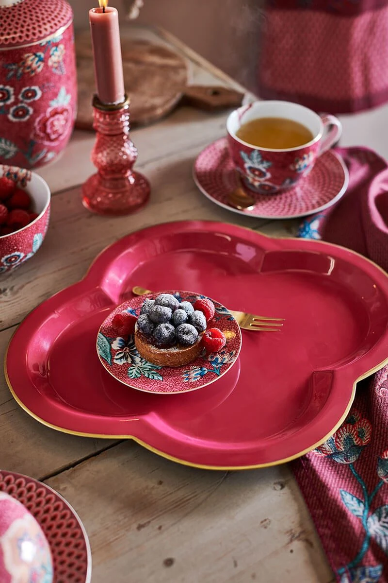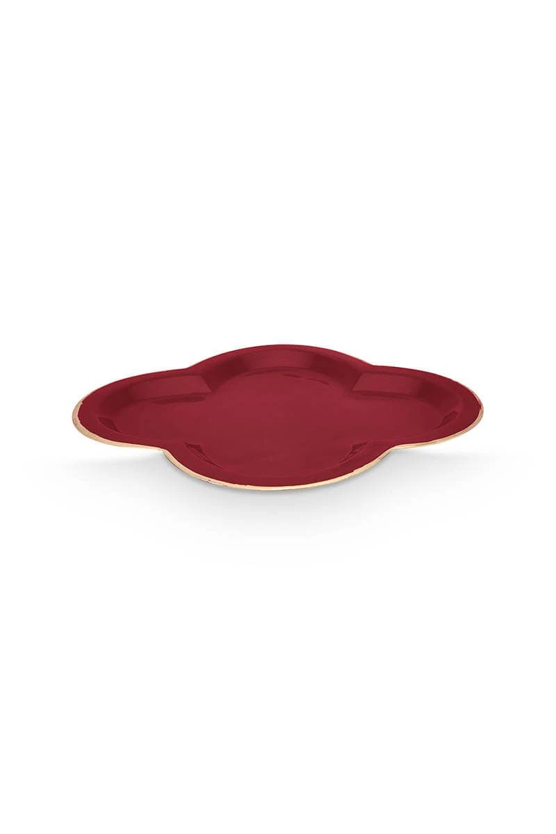Brighten up your interior with this large enamelled tray in the shape of a clover. The tray is finished with a golden edge for an extra luxurious look.