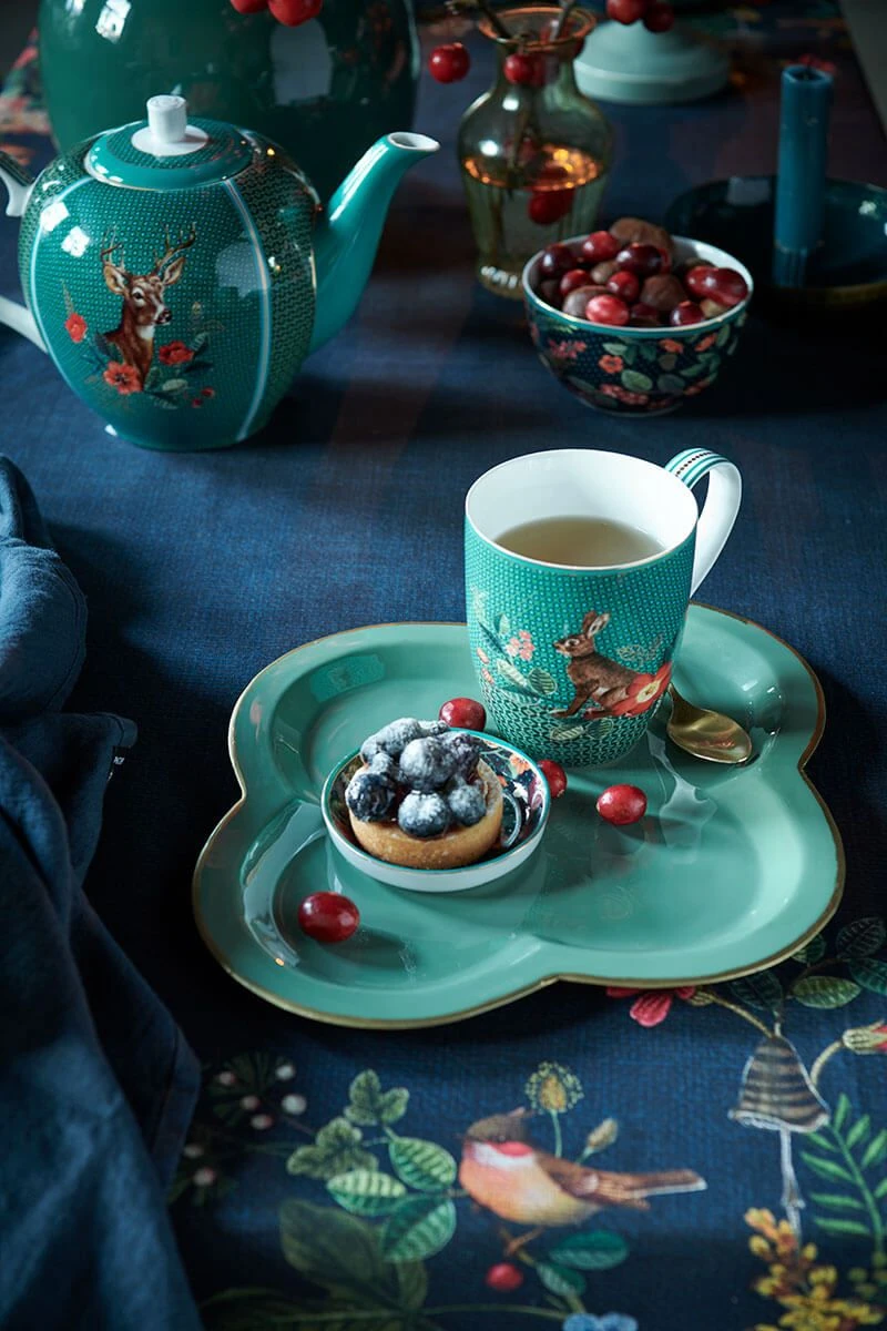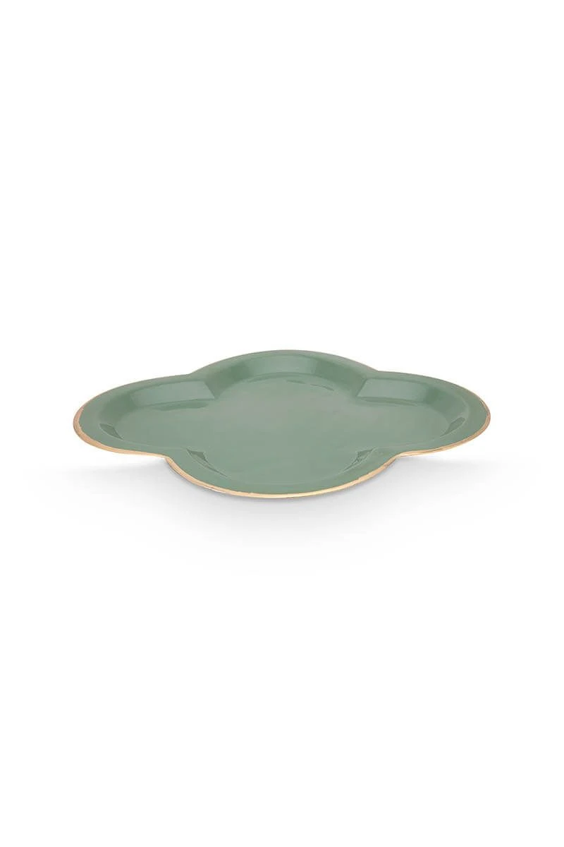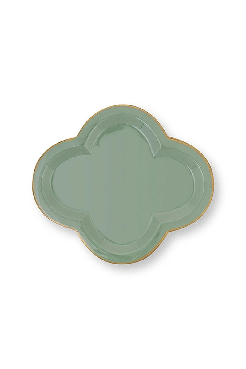 Brighten up your interior with this small enamelled tray in the shape of a clover. The tray is finished with a golden edge for an extra luxurious look.