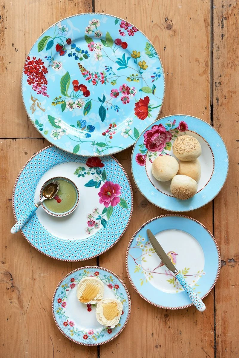 For this breakfast plate, we worked with a base of calm colours, so that our refined Early Bird illustration with lovely cherry blossom takes centre stage. It’s adorned with our famous red-white stripe with gold details.