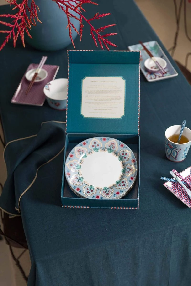 Complete your tableware with these 21cm Flower Festival breakfast plates. The set of 4 breakfast plates has a light blue background and is decorated with the elegant Flower Festival design. This rich floral design is made up of a variation of fanciful red and pink chintz flowers with light blue and green leaves. With our Flower Festival porcelain, you will make your crockery cabinet and table shine.