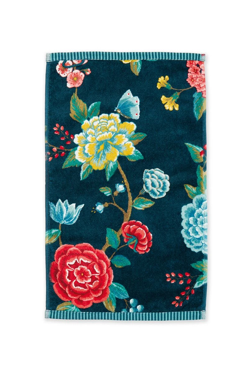 Refresh your bath linen stack with the dark blue Good Evening guest towels. The Good Evening Guest Towels feature a print of elegantly drawn oriental flowers. A bird and a butterfly flit among the blossoms. The guest towels have a blue-striped trim. The print includes the colours yellow, blue, green, pink red, and white. The Good Evening bath linen series pair beautifully with the other series by Pip Studio, which creates a lovely mix-and-match effect in your bathroom.