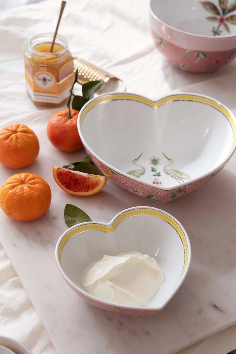 For everything from delicious oven dishes to homemade pies, this bowl from our La Majorelle collection is a kitchen accessory that is as practical as it is beautiful. The bowl is decorated with the cheerful La Majorelle design. This design features stylised flower branches with exotic flowers. The shape of the bowl makes it extra unique. Our La Majorelle porcelain will make your china cabinet and table shine!