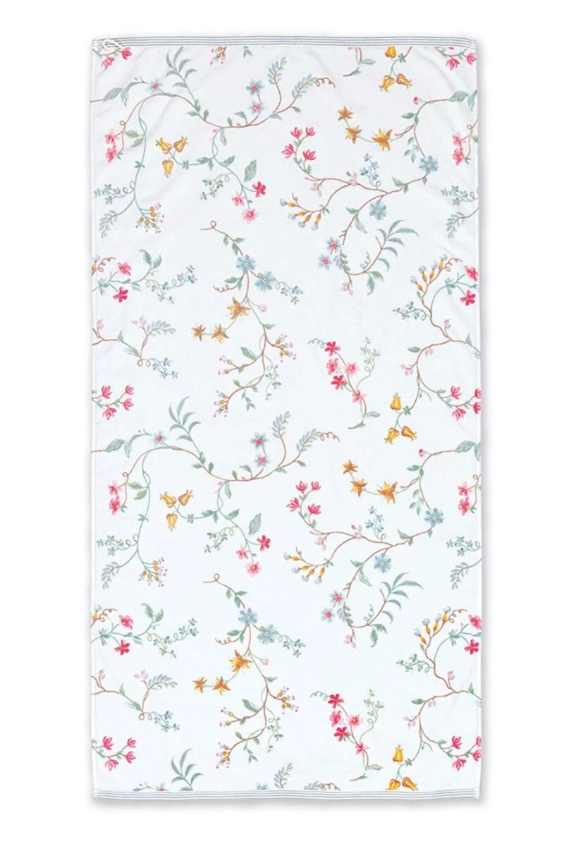 Opt for a luxurious bath experience with this Wit XL Les Fleurs bath towel. The fabric feels super comfortable, while the design will look truly elegant in any bathroom. The Les Fleurs Bath Towel features a print of elegant flower branches with small, stylized flowers. The Les Fleurs bath linen series pairs beautifully with the other bath linen series by Pip Studio, which creates a lovely mix-and-match effect in your bathroom. The Les Fleurs XL bath towel is made from 100% high-quality cotton terry velour with a quality of 500 gr/m2, making it super soft, plump, and thick and giving it excellent moisture-absorbing, breathable, and quick-drying qualities. Drying off after a shower or bath was never so much fun!