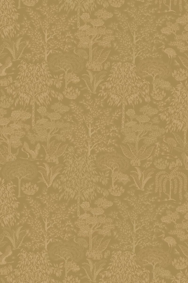 Give your home a magical make-over with this stunning Origami wallpaper in the colour ocher/gold. The design has a repetitive pattern with stylised trees and birds. The matte background with metallic print gives the wallpaper a unique and sophisticated feel. The Origami wallpaper is available in different colours: light green/silver, off white/silver, terra/rosegold and dark blue/rosegold.