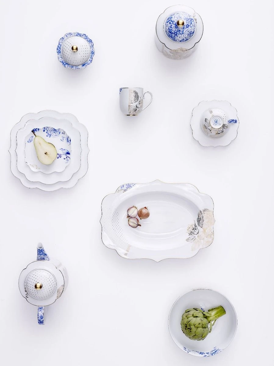 The espresso cup and saucer with the Royal White design is part of our Royal White porcelain set. Royal White is refined porcelain with subtle blue painted features and golden elements.