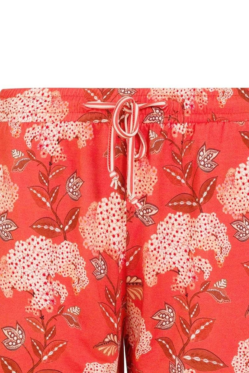 Are you ready for ultimate comfort? These short coral pink Flora Firenze pants from our new homewear collection are comfortable and soft. Decorated with the colorful Flora Firenze design. The design consists of a playful print of blossom and leaves. The waist is elastic and has a cord all around for ultimate comfort. Mix & match these pants with the cheerful prints and comfortable items from our latest homewear collection and create a beautiful outfit.
