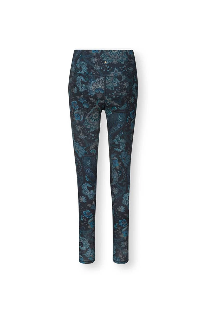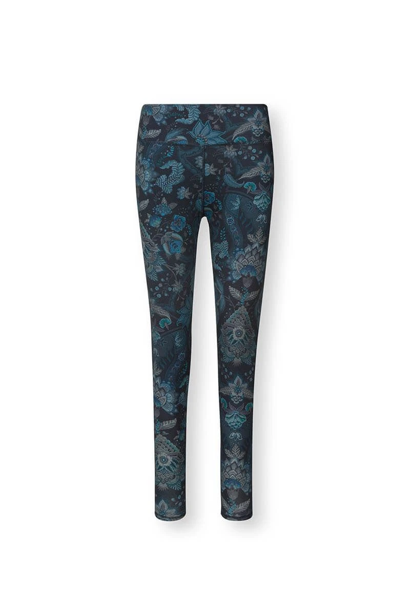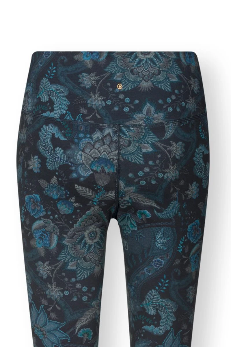These long sport leggings in dark blue are decorated with the cheerful Kyoto Festival design. The repeated floral design is made up of a variation of imaginative chintz flowers and leaves. The waist is made of an elastic fabric for a comfortable and flattering fit.