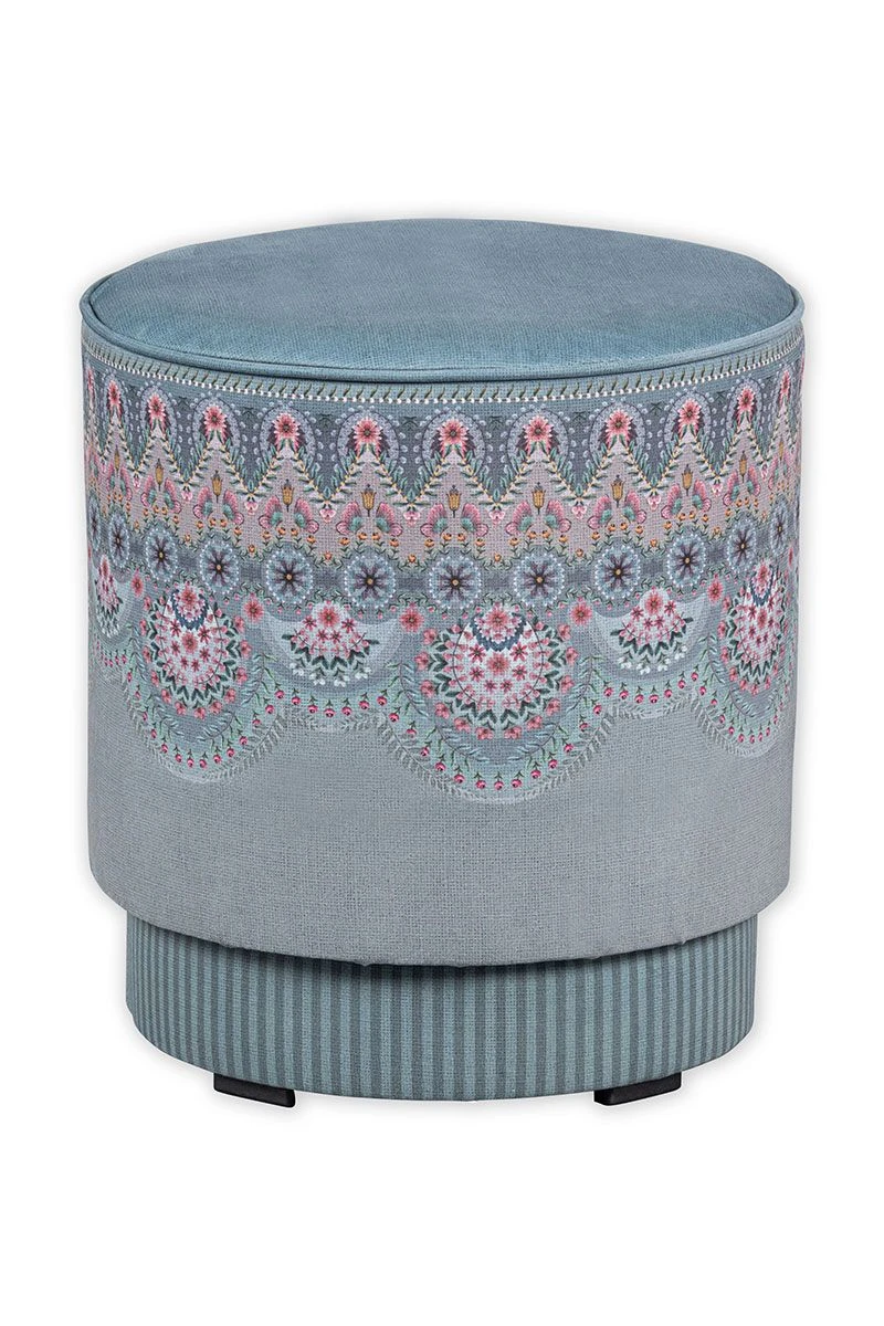 The high blue Majorelle stool is a mood maker in any interior. The design is inspired by antique and traditional rugs from the Far East. This item is a genuine eye-catcher. The colourful details against the soft green background give this stool a vintage look and an elegant twist. The stool combines perfectly with our Majorelle by Pip blue carpet. Use the stool as an extra seat or comfortable foot rest.