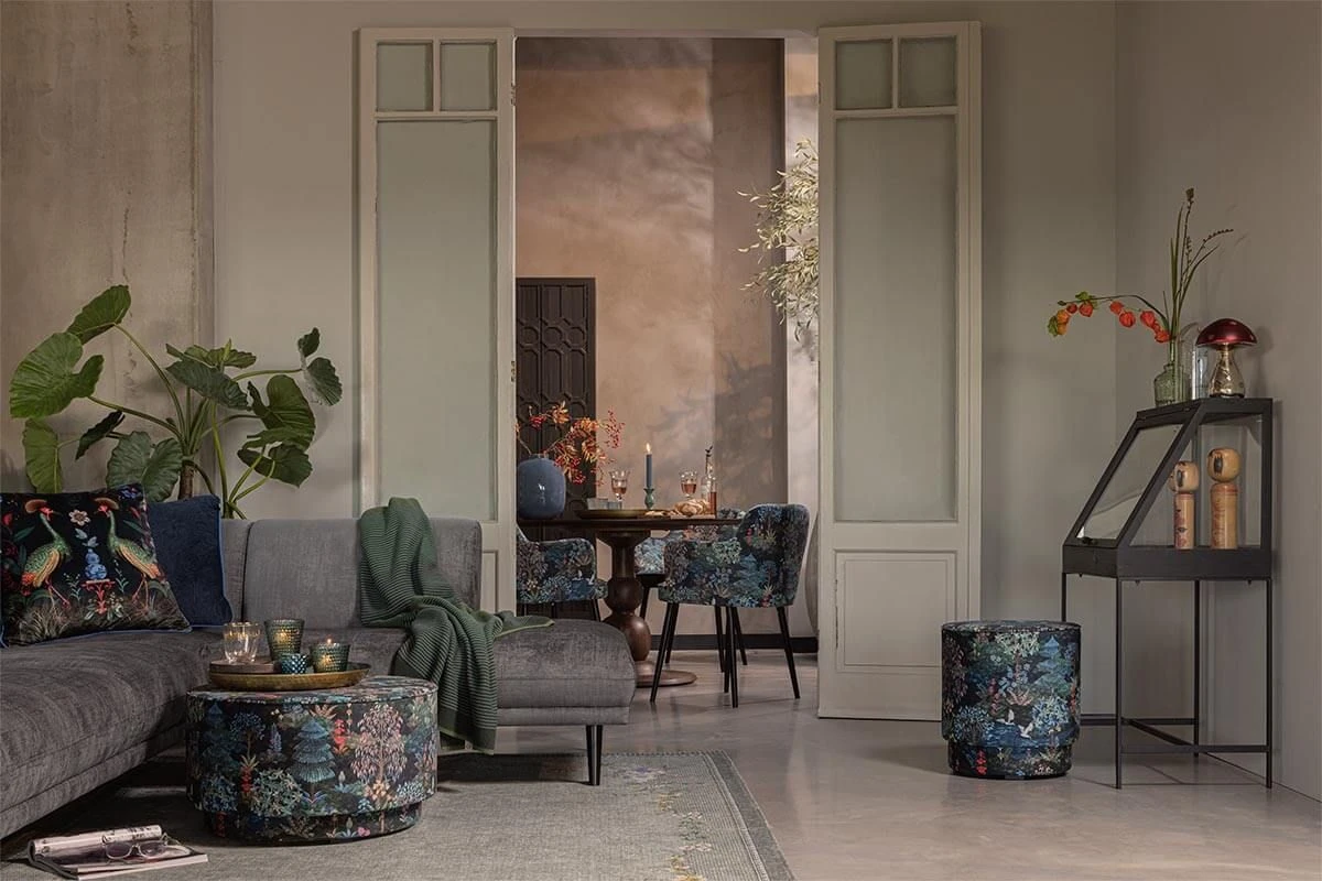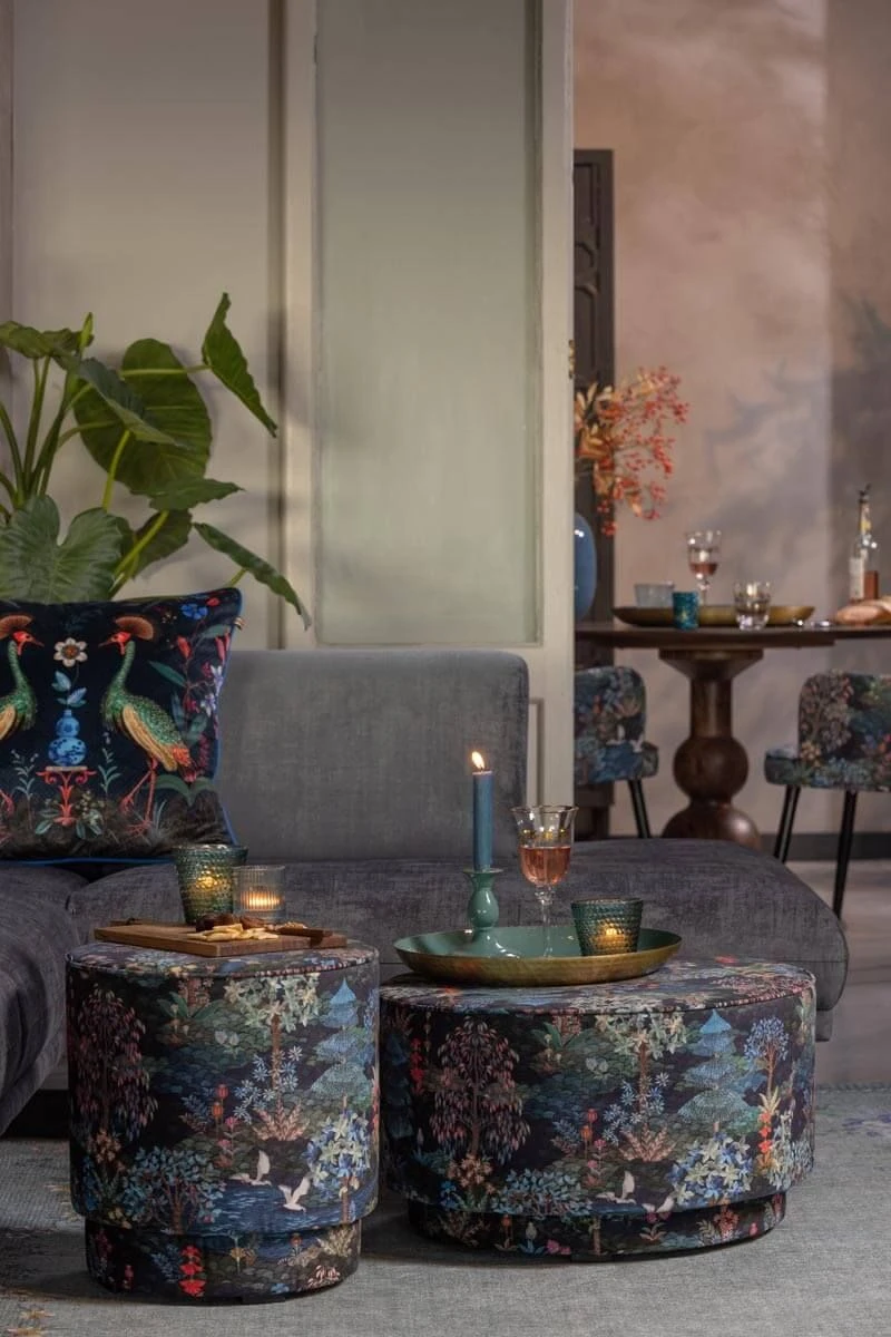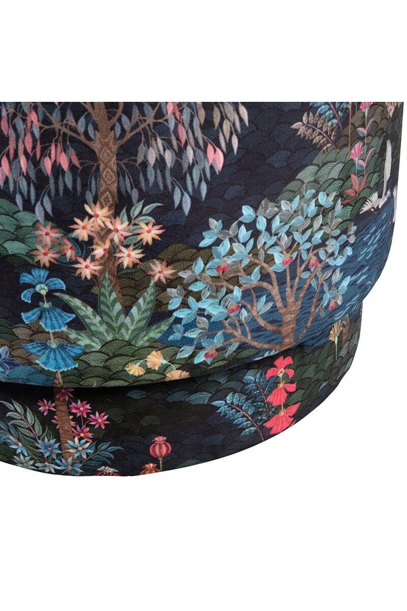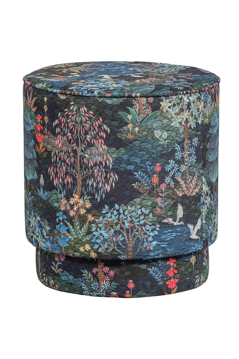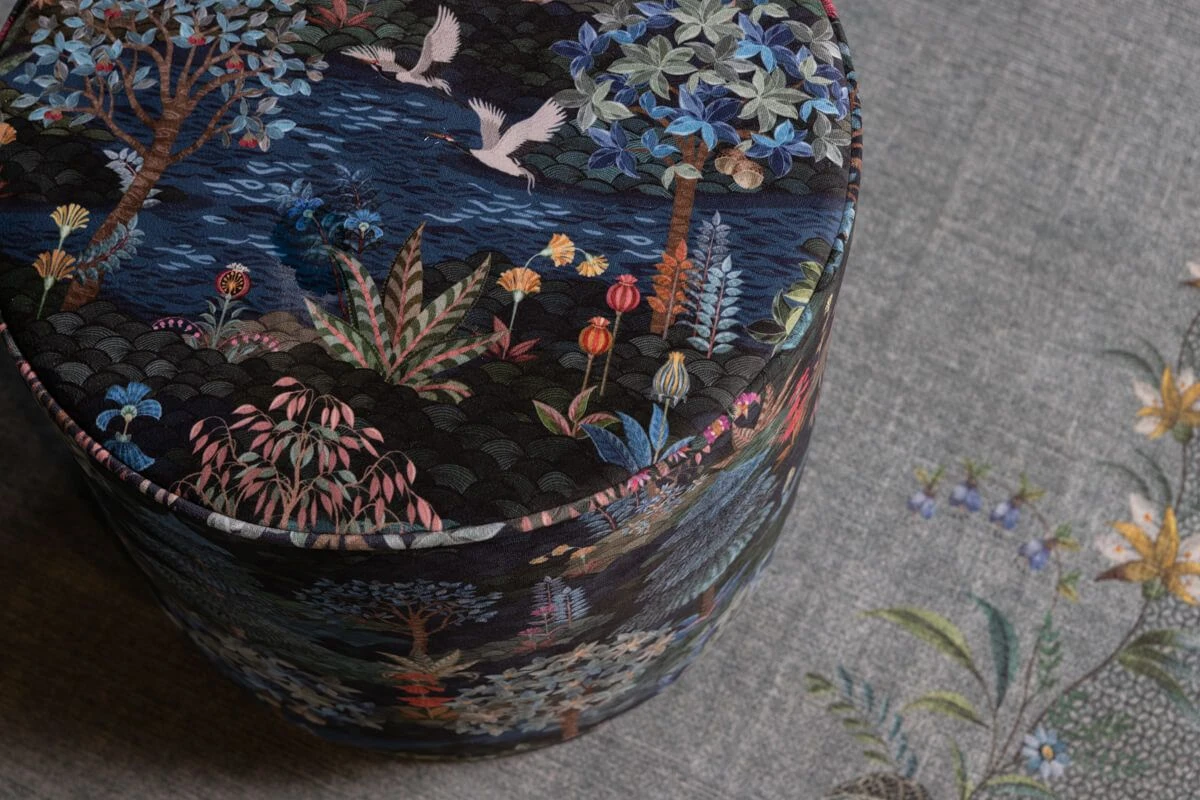 The design consists of a variety of imaginative trees and colorful flowers combined with beautiful birds. Combine the stool with the matching dark blue Pip Garden carpet and make it a magical place. You can use the stool as a seat or to rest your legs on.