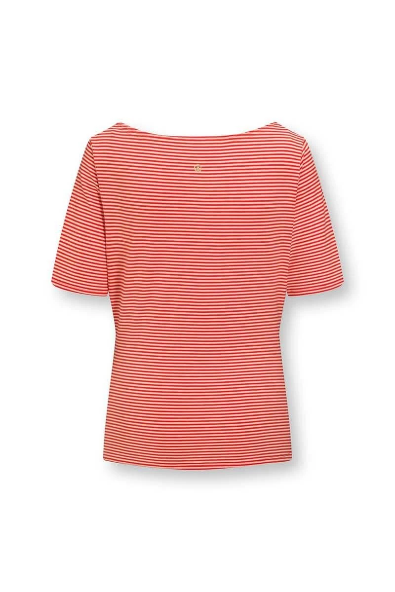 Looking for a basic top for a casual look? This comfortable Tjessy top is the perfect basic item to create layers with. Made of viscose, polyester and elastane, making the top wonderfully soft and stretchy. This coral pink top has a high neck and is perfect for creating different casual styles. The top is decorated with the Little Sumo design with subtle stripes. Mix and match this top with items from the new homewear collection for a beautiful look.