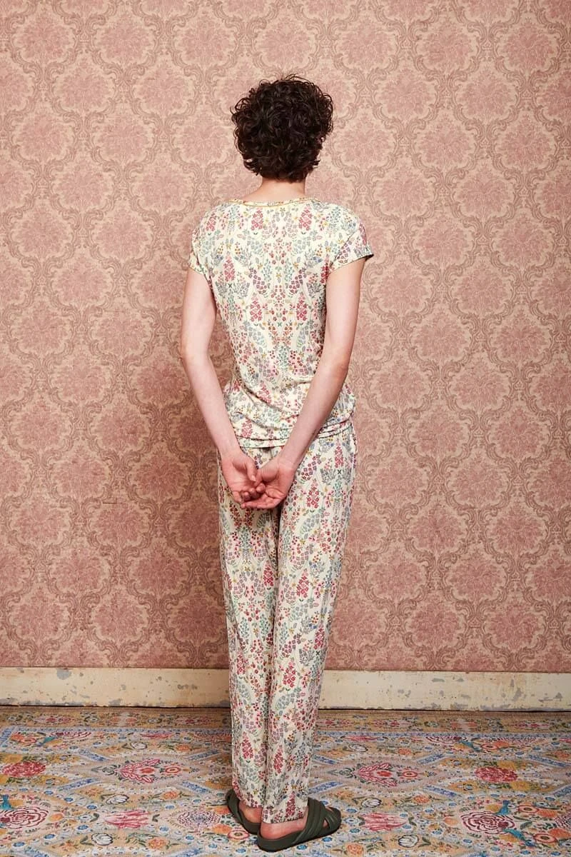 Are you going for a casual but fashionable look? Then this comfortable Toy top in white is the perfect basic item for you to create layers with. Made of viscose and elastane, which makes the top wonderfully soft and stretchy. The white top is decorated with the Primavera design and is perfect for creating different casual styles. In addition to the pattern, the V-neck provides the finishing touch. Mix and match this top with items from the new homewear collection for a beautiful combination.