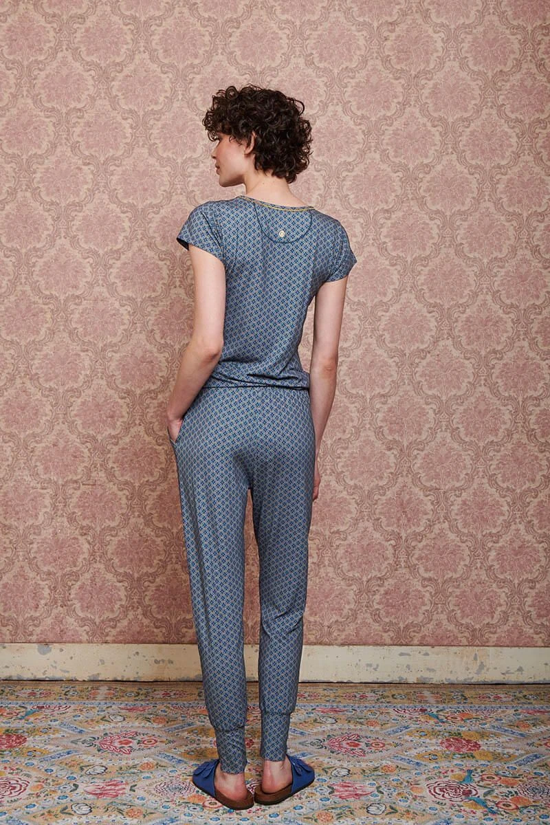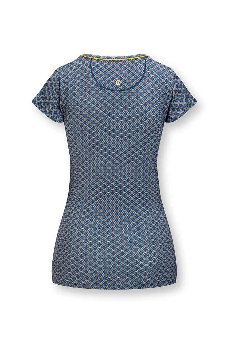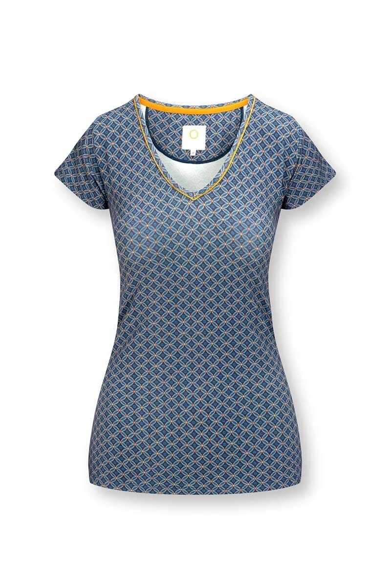 Looking for a basic top for a casual look? This comfortable Toy top is the perfect basic item to create layers. Made of viscose and elastane, which makes the top wonderfully soft and stretchy. This blue top has a v-neck and is perfect for creating different casual styles. The top is decorated with the Tegola design with subtle stripes. Mix and match this top with items from the new homewear collection for a beautiful look.