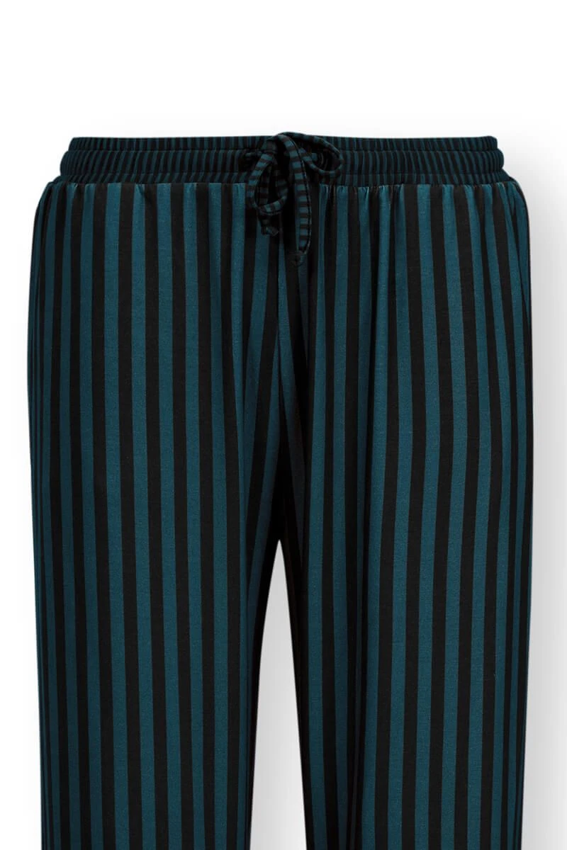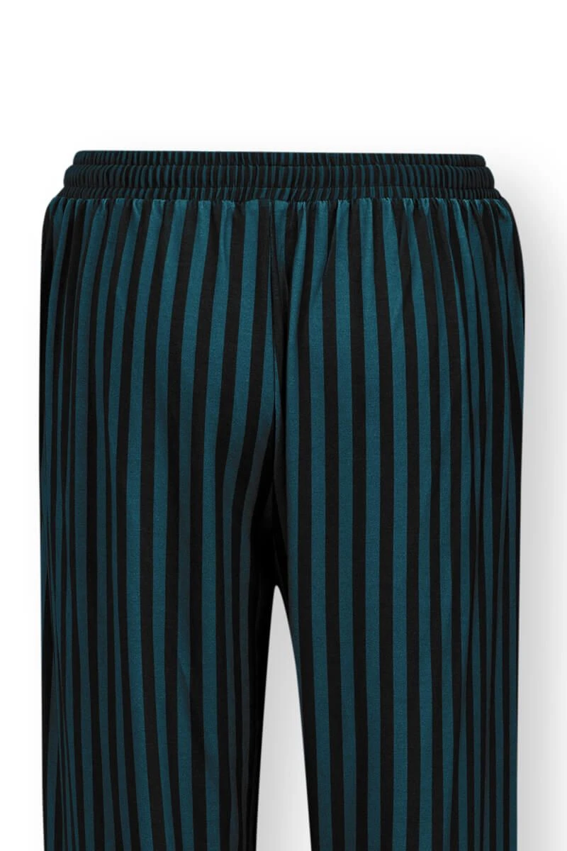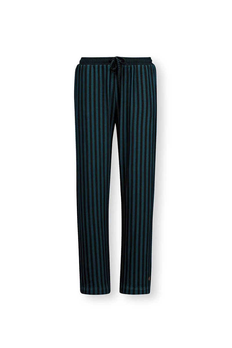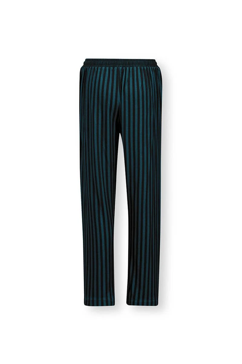 These long trousers in dark blue are decorated with the striped Sumo Stripe design. The repeated design is made up of symmetrical stripes. The waist is elastic and has a cord all around for a comfortable fit.