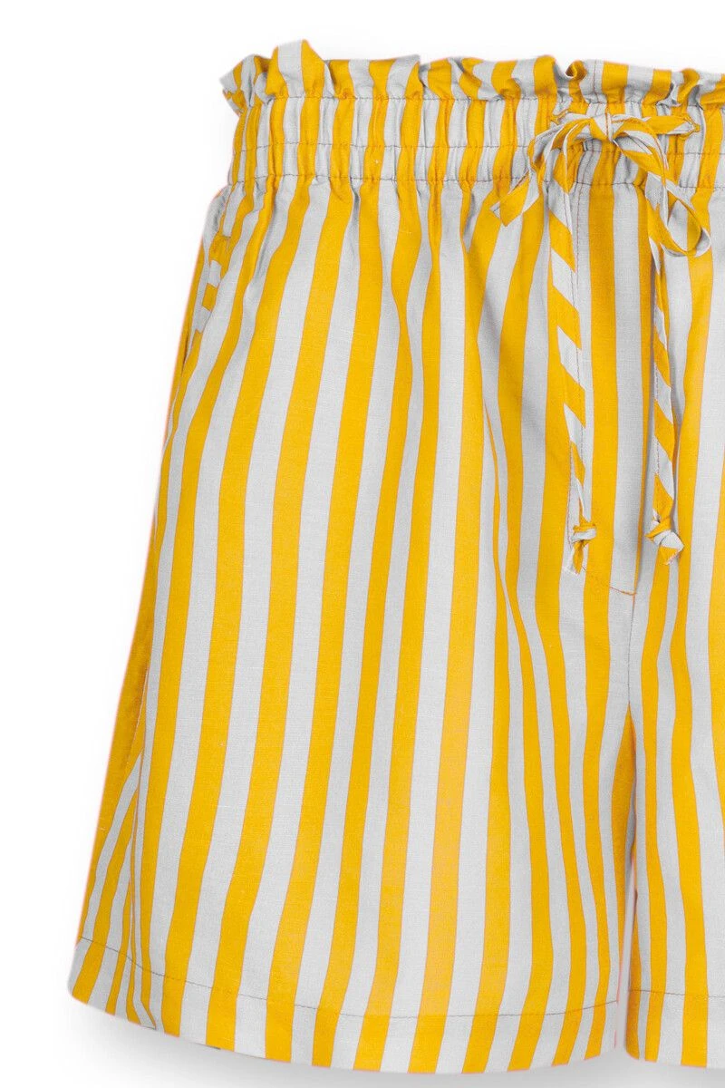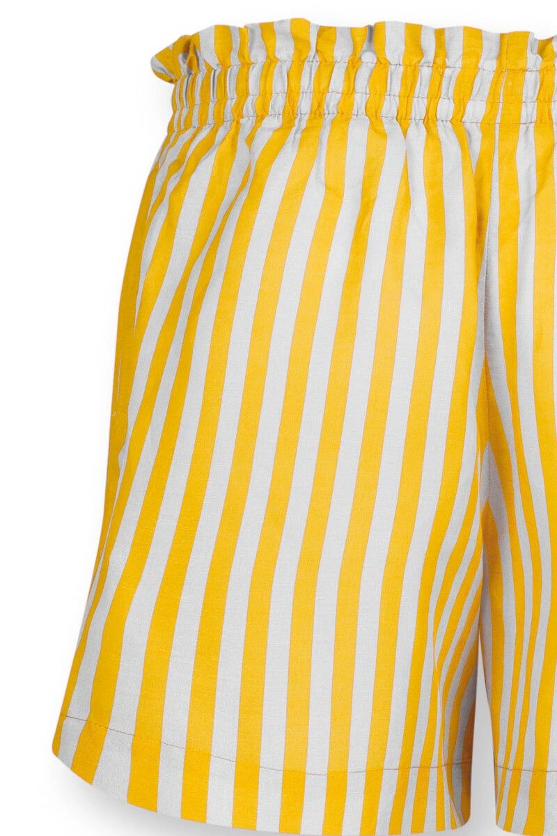 Ready for ultimate comfort? These short trousers featuring the Sumo Stripe design are like a ray of sunshine on a cloudy day. The Sumo Stripe design has a playful effect, with vertical stripes as the main theme. The short trousers also have a cheerful yellow colour that is easy to combine with the other items in this collection. Apart from an elasticated waist, the short trousers also have a drawstring for added comfort. Style with a matching type to create a gorgeous combination.