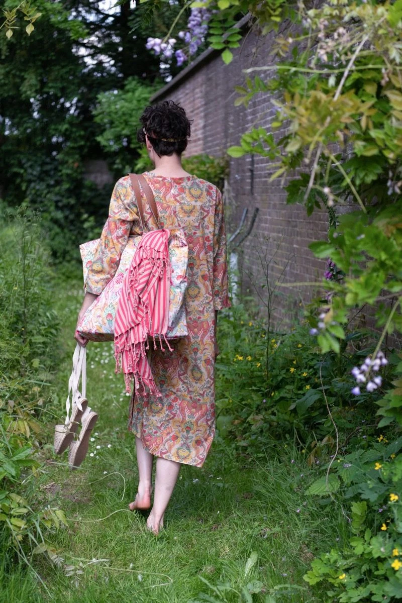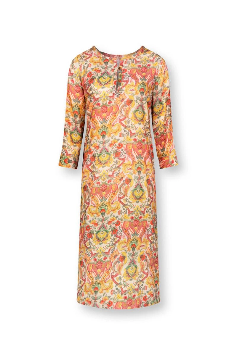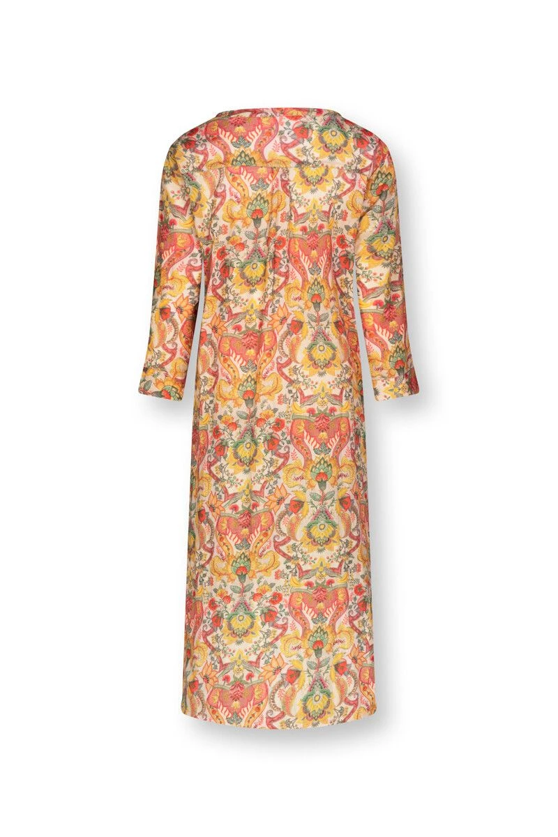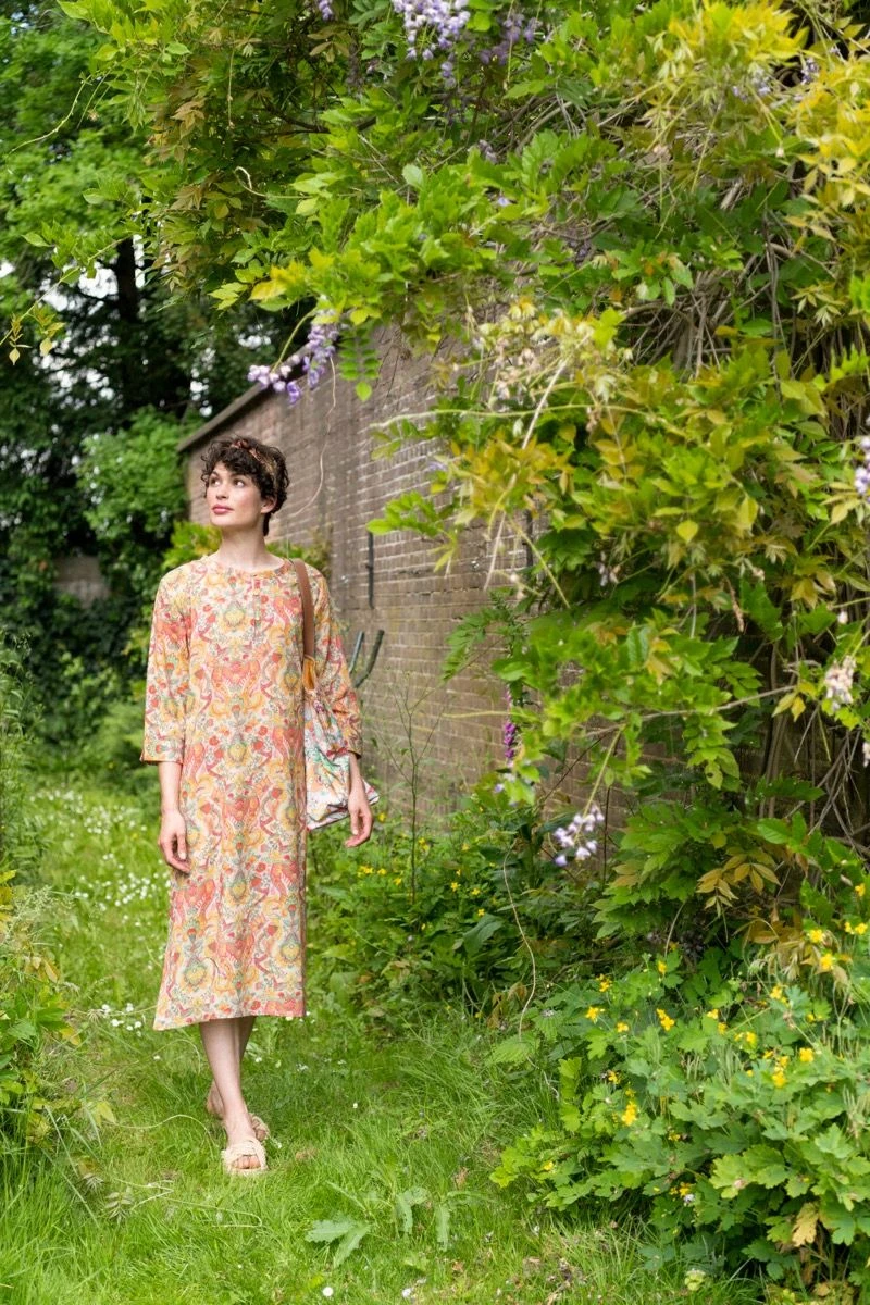 Enrich your wardrobe and imagine yourself in a world full of cheerful colours when you put on this yellow Dania tunic. Decorated with the beautiful Kyoto Festival print, a repetitive floral design featuring a variety of fanciful chintz flowers and leaves. Symmetrically placed flower branches with elaborately decorated flowers give the design a luxurious flair. Our comfortable tunic is made of viscose and cotton, making it very soft to the touch. Mix & match our tunic with a variety of accessories from the newest collection for a gorgeous result.